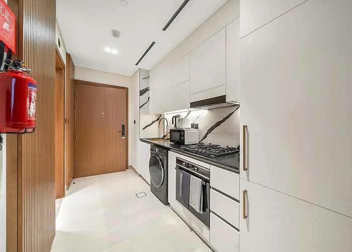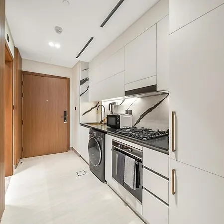 Geniet van een ingerichte kitchenette in First Class Studio Canal And Pool View met een koffie/theezetapparaat, een koelkast en een oven voor uw gemak. De dichtstbijzijnde luchthaven Dubai Creek SPB is op 5 km van het appartement.